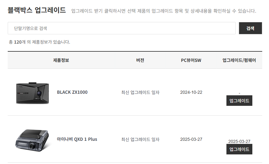 - 메뉴: 상단 메뉴 중 "고객지원 > 업그레이드 센터 > 블랙박스" 선택