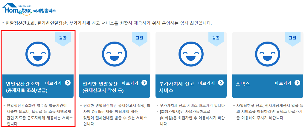 2. 여러 메뉴 중에서 '연말정산간소화 바로가기'를 눌러주세요.