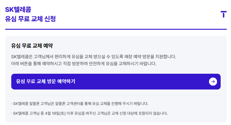 SKT 유심 무상교체 신청, 예약 방법